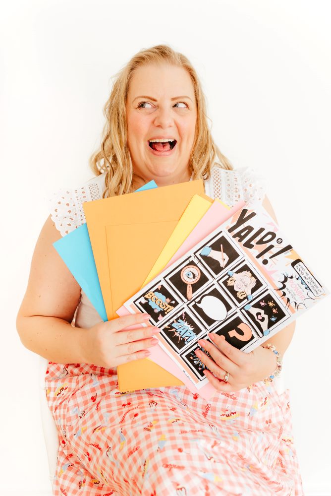 Her creative journey is fueled by a passion for bold colours and bright, vibrant designs, inspired by the bold lines of pop art and comics.